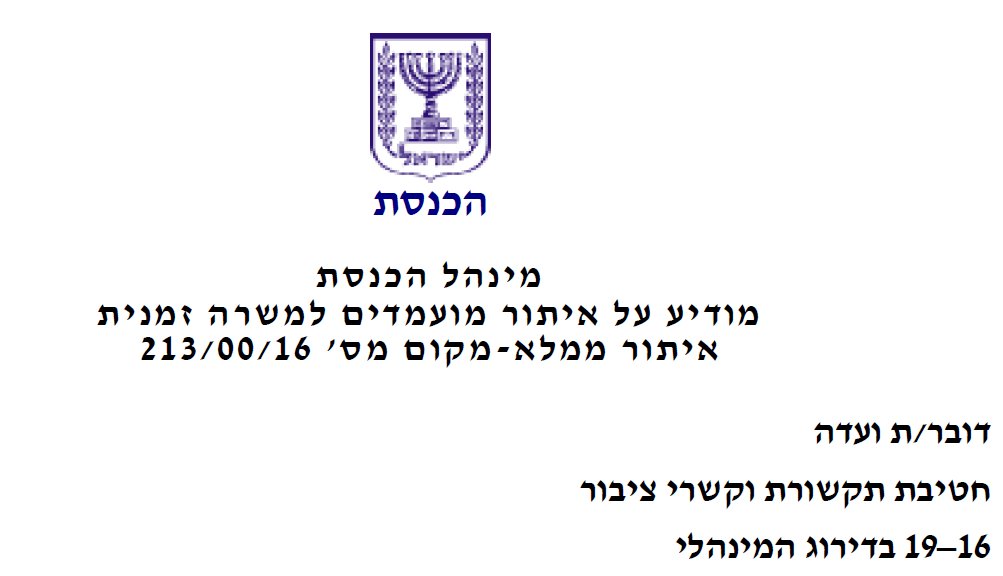 (via Twitter http://twitter.com/KnessetIL/status/780963747091406849)