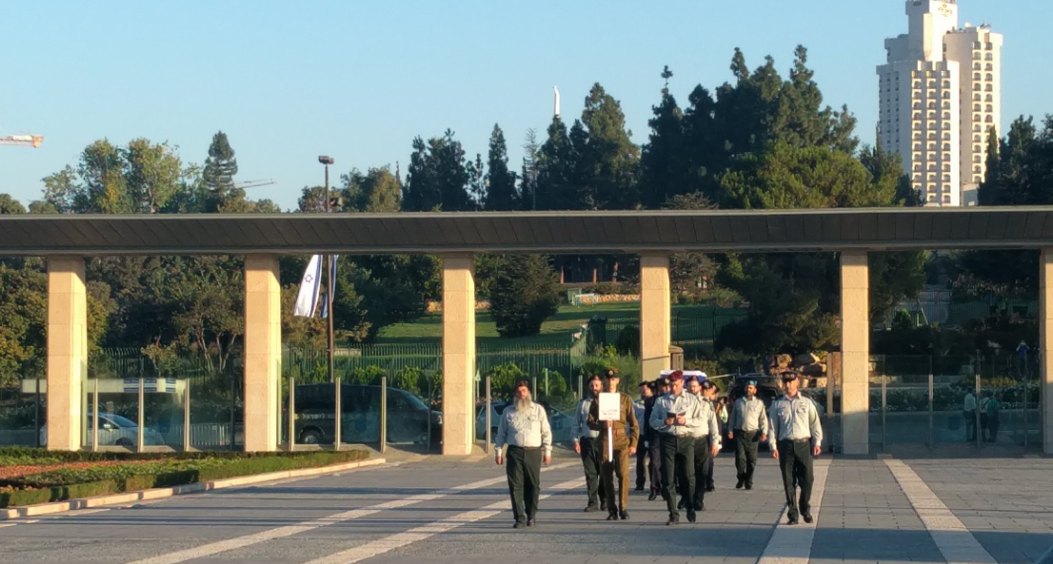 רחבת הכנסת: מנכ"ל הכנסת ומשמר הכנסת נערכים לקבלת ארונו של הנשיא התשיעי בעוד מספר דקות #ShimonPeres https://t.co/OpzXxWQJdO