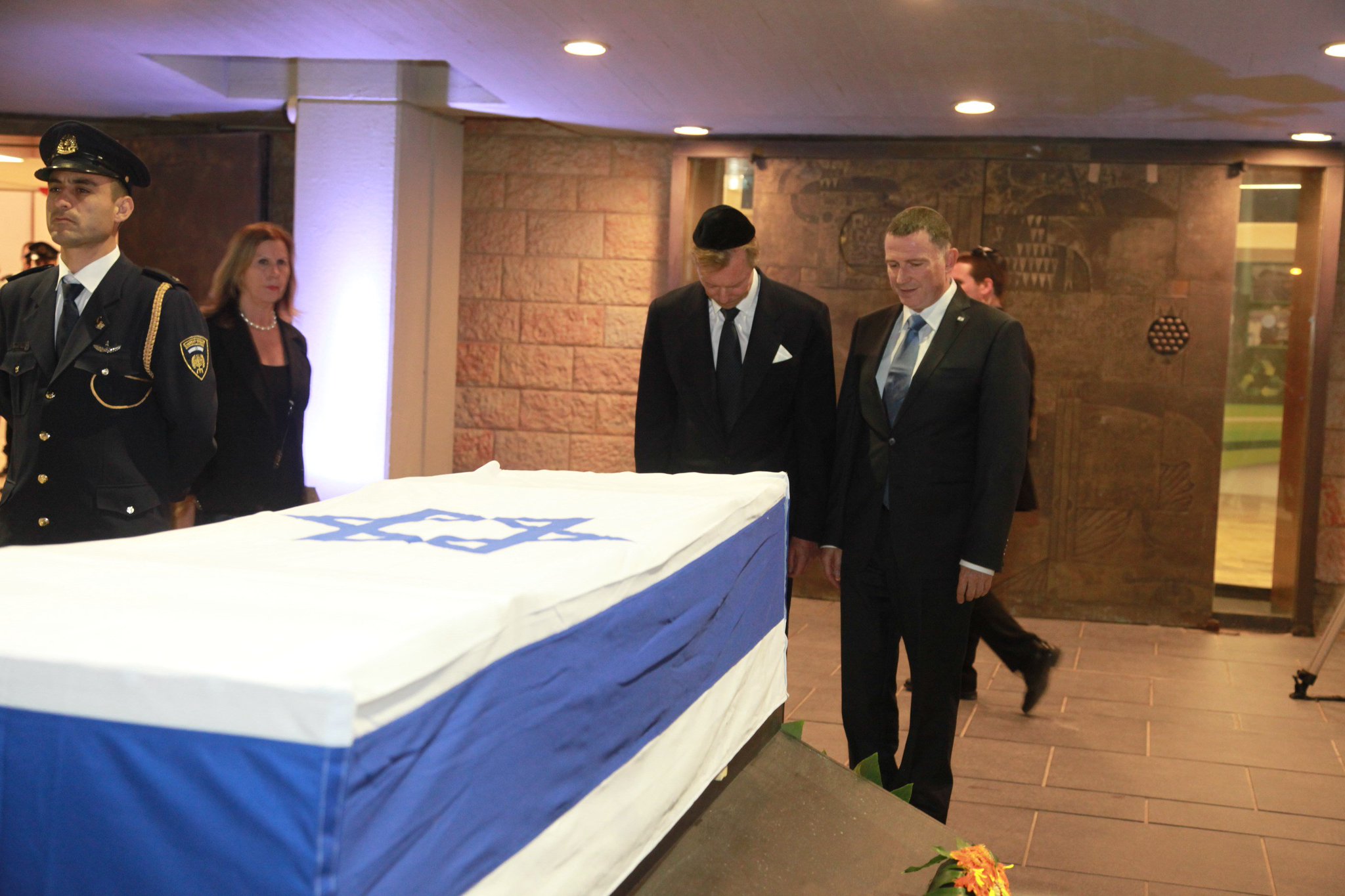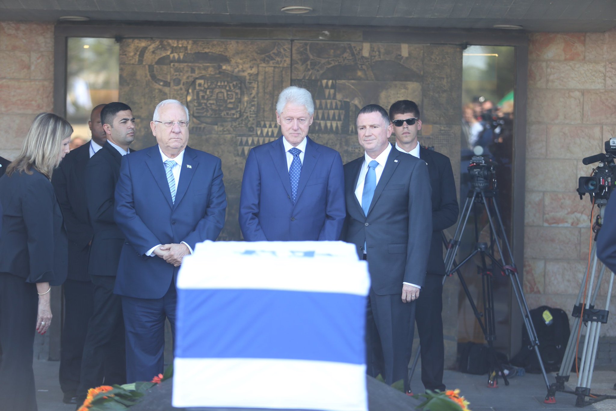 נפרדים @PresidentPeres: הנשיא @rubirivlin רה"מ @netanyahu ויו"ר הכנסת @YuliEdelstein הניחו זרים על הארון ברחבת הכנס… https://t.co/dvvZ7BvLTg