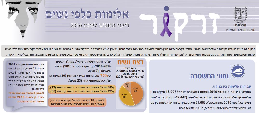 מרכז מחקר ומידע:3 מתוך 8 הנשים שנרצחו ע"י בני זוגן ב-2016 הגישו תלונה קודמת במשטרה. לעוד נתונים היכנסו:… https://t.co/Y15z3E6zPL