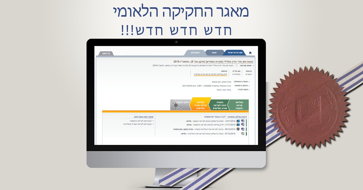 מעכשיו במאגר החקיקה הלאומי גם הצעות החוק בהליך החקיקה. מוזמנים לעקוב לבדוק להתעדכן בזמן אמת .https://t.co/ZhN2kWLyJq https://t.co/fBTpn145mR