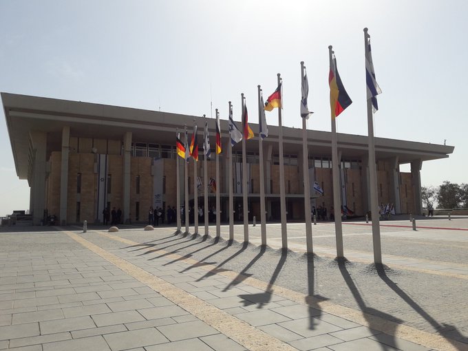 הדגלים מוכנים ברחבת משכן הכנסת לקראת בואו של נשיא הבונדסטאג, מר וולפגנג שויבלה, The Honorable Dr. Wolfgang Schäuble President of the German Bundestag #Bundestag @IsraelinGermany https://t.co/AdYoILZgUc