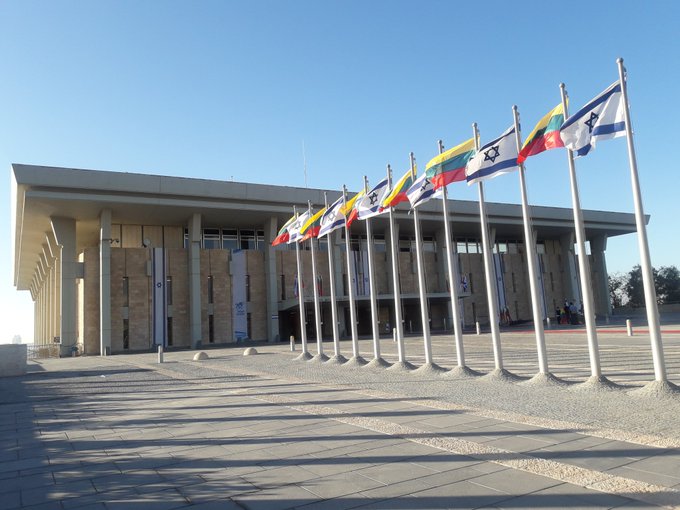 ברחבת משכן הכנסת מתנופפים הדגלים לקראת ביקורו של יו"ר פרלמנט ליטא @LRSeimas Viktoras Pranckietis #IsraelInLithuania https://t.co/vqJfhQzdHA