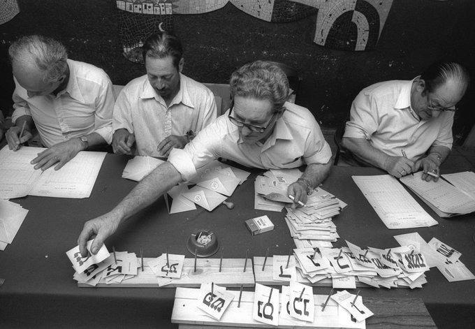 עוד 58 ימים #בחירות2019 בתמונה: הבחירות לכנסת ה-9, ספירת הקולות בקלפי בתל אביב, 17.5.1977. #ISE2019 צילום: יעקב סער, לע"מ https://t.co/Xa3ESVFV6r