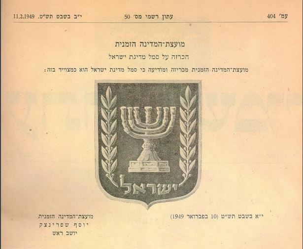 #היום_לפני 70 שנה מועצת המדינה הזמנית מאשרת את סמל המדינה. הסמל שנבחר הוא מנורת שבעת הקנים ומשני צדיה ענפי זית. בתחתית הסמל מופיע הכיתוב ”ישראל”. הוא עוצב על-ידי האחים גבריאל ומקסים שמיר. לחוק במאגר החקיקה הלאומי >>> https://t.co/wil57Tg9wV #היסטוריה_בכנסת https://t.co/WonPi7HaOu